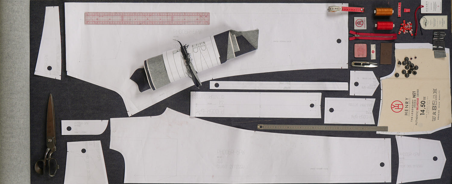 • 2,40 mètres d’une toile denim selvedge brute de 14,50 oz, en coton bio réhaussée d’un soupçon d’élasthanne en provenance de la maison